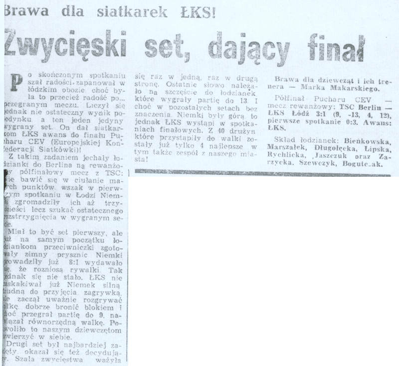 Sekcja siatkówki kobiet w ŁKS została założona w 1929 roku i istniała aż do wybuchu wojny, do 1939 roku. Przez dziesięć lat drużyna brała udział w rozgrywkach o mistrzostwo okręgu łódzkiego. Przez kilka lat była wicemistrzem. W drużynie grały zawodniczki z sekcji koszykówki i hazeny (hazena to gra zbliżona do piłki ręcznej, reguły tej dyscypliny zostały opracowane w 1905 roku).